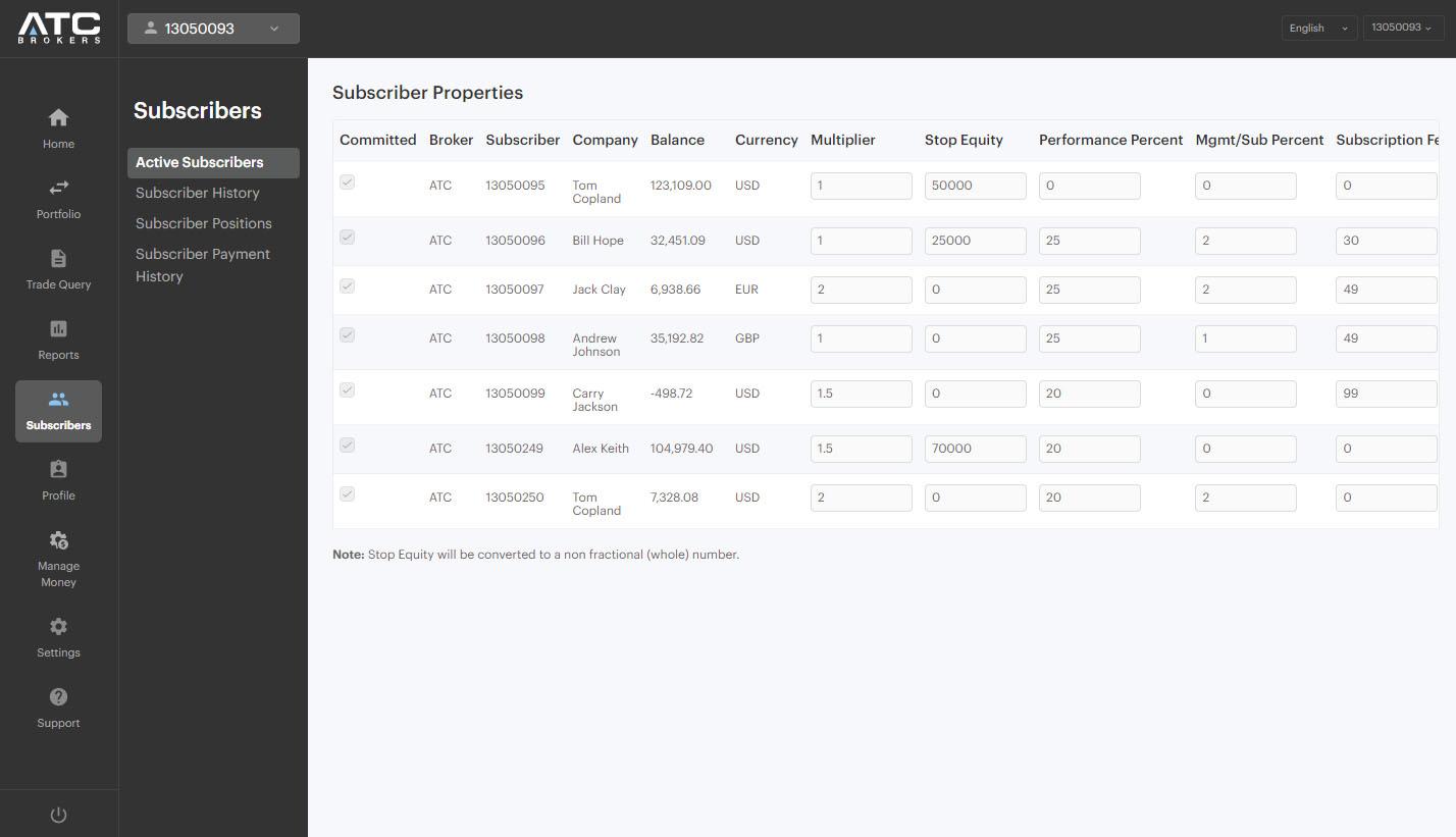 The account holder has access to the back office to view the subscription settings, level of participation, equity stop level, and the fees associated with the account. The account holder can also monitor the trading activity, pull report summaries, request to withdraw funds, submit a ticket inquiry and much more.